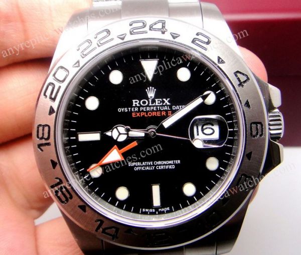Heavy construction Replica Rolex Explorer II Watch 42mm - Stainless Steel Band Black Face.