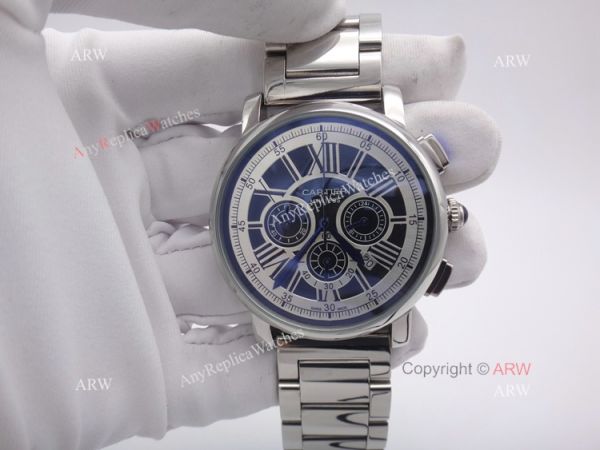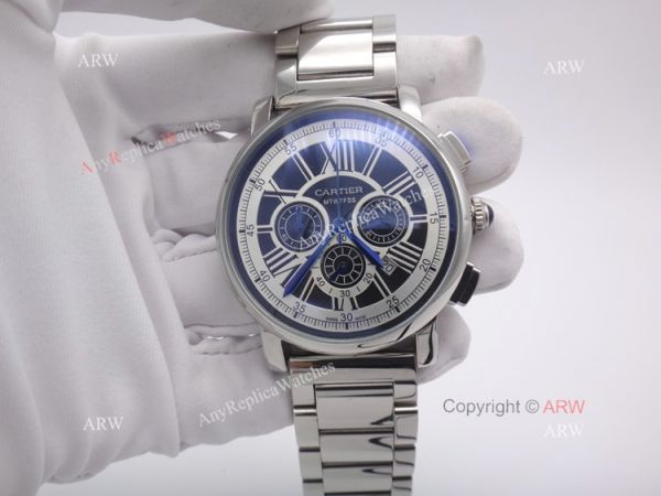New Model Replica Cartier Stainless Steel Mens Watch Black Face Chronograph