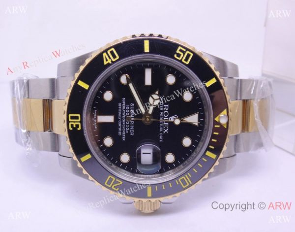 Replica Rolex Submariner Mens watch Two Tone Black Dial Black Ceramic Bezel