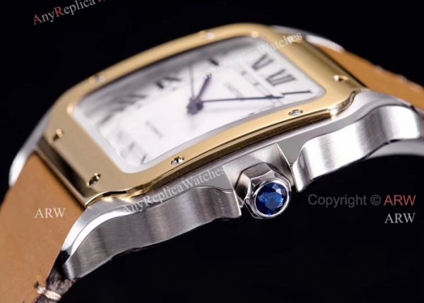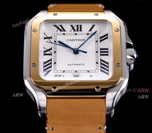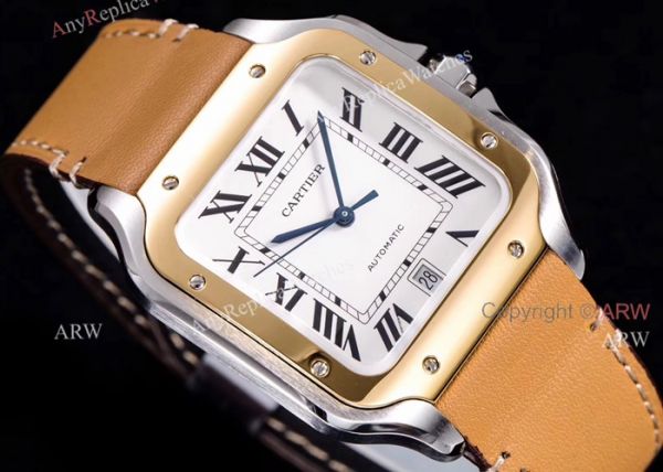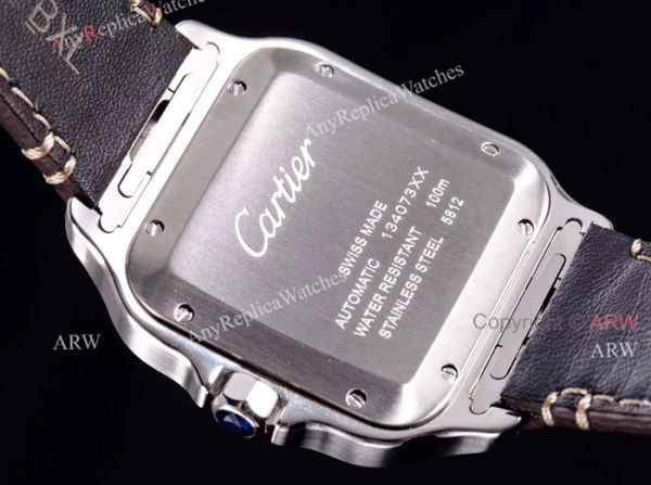 New 2018 Fake Cartier Watches Sale - Cartier Santos Brown Leather Strap Replica Watches For Men - Large Size.