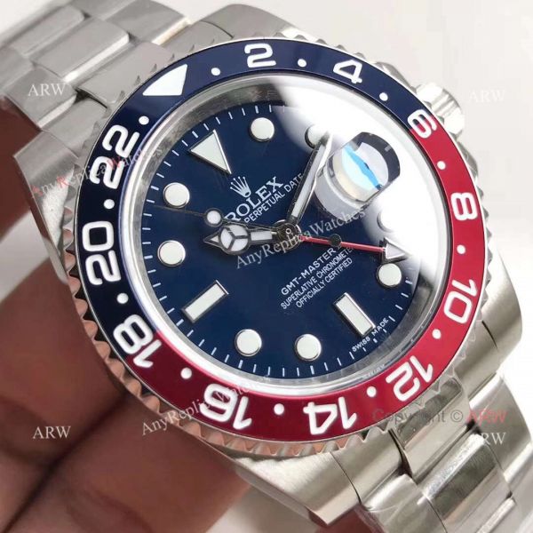 Heavy construction Stainless Steel Replica Rolex Pepsi Bezel GMT Master II Blue Face watch. You will receive the same watch shown in picture. Buy Now, Fast shipping and 100% customer satisfaction guaranteed.