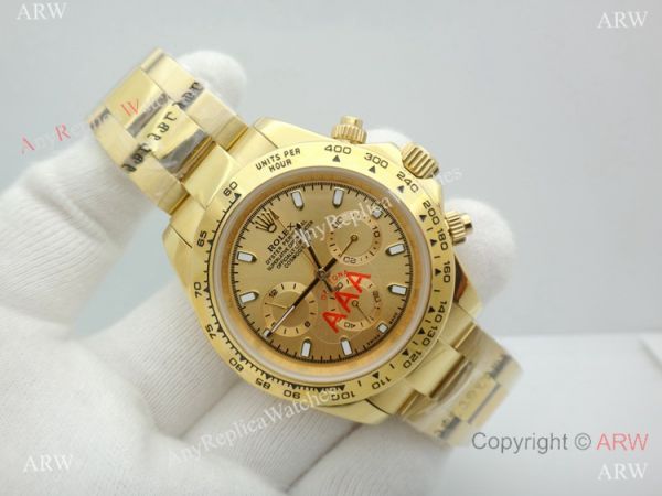 Heavy construction that makes the watch very durable. We only sell Super High Quality replicas, Our gold rolex comograph daytona men replica watch will never let you down. Buy now, You will be 100% satisfied.