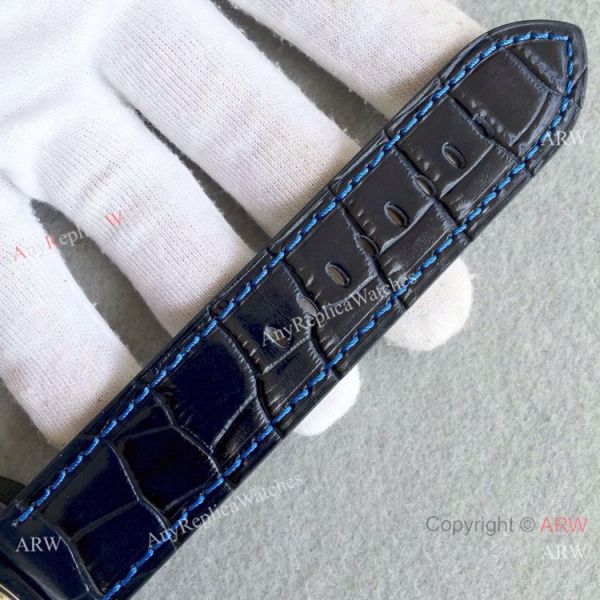 Watchband: Genuine dark Blue leather watch band blue stitch original style deployment buckle