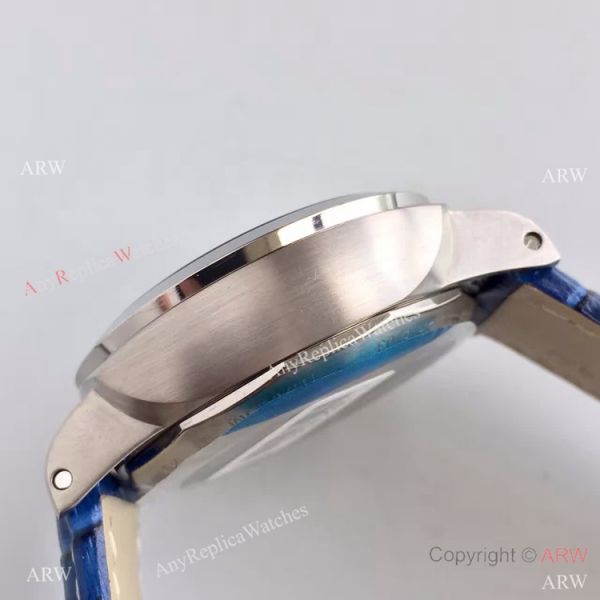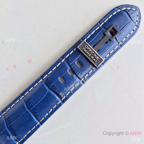 Panerai Stainless Steel Case Blue Dial Blue Leather Watch Bracelet