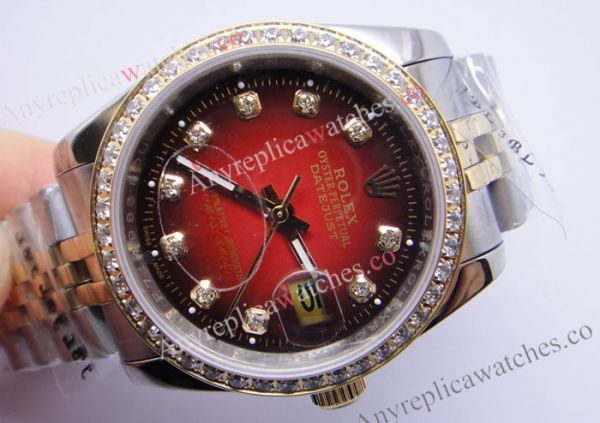 Copy Rolex Datejust Watch 2-Tone Jubilee Red Diamond Markers for Women ARW-Rolex-20180128 |
