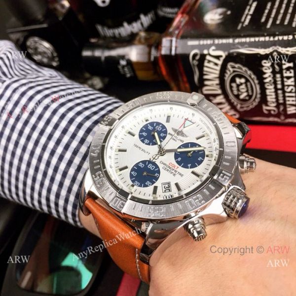 Copy Breitling COLT Chronograph Watches SS Brown Leather Strap