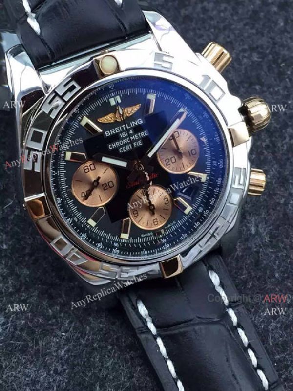Swiss Replica Breitling Chronomat 44mm Watch Black Dial Rose gold subdial