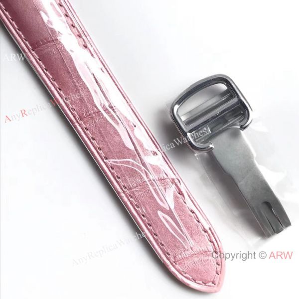 Silver Stainless Steel Watch Case Pink Dial Pink Leather Strap