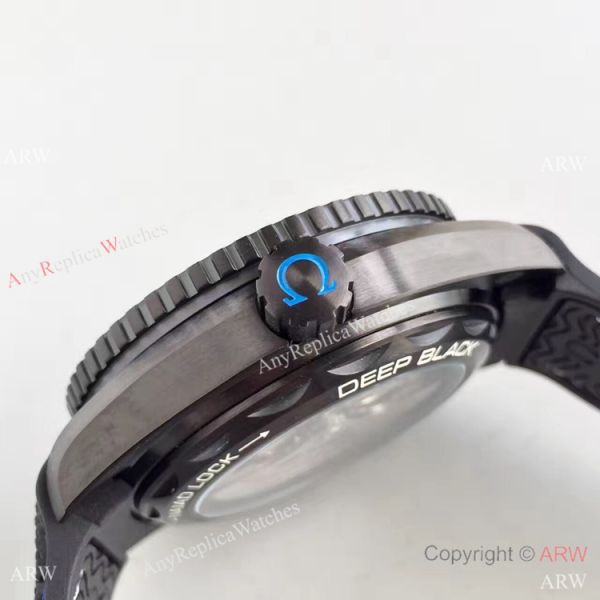 Solid Black Case Black Dial Black & Blue Ceramic Bezel Black Rubber Watch Strap