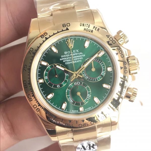 We guarantee this is the highest quality Rolex Daytona Replica watch you can find in the replica market. AR Factory Daytona Yellow Gold Case Green Face Watches have the best of everything. You will receive exact watch as shown. 1-Year-warranty and life time repair service. Money Back if you do not like it. Ship to worldwide.