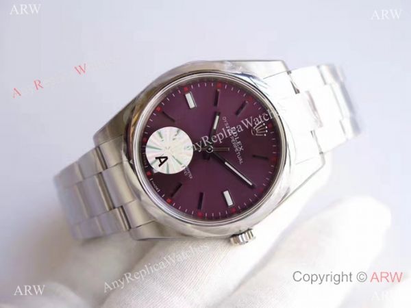 Replica Rolex Oyster Perpetual New Red Grape Dial Stainless Steel Swiss 3132 Watch JF Factory