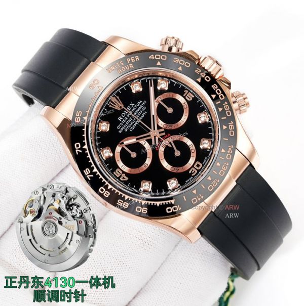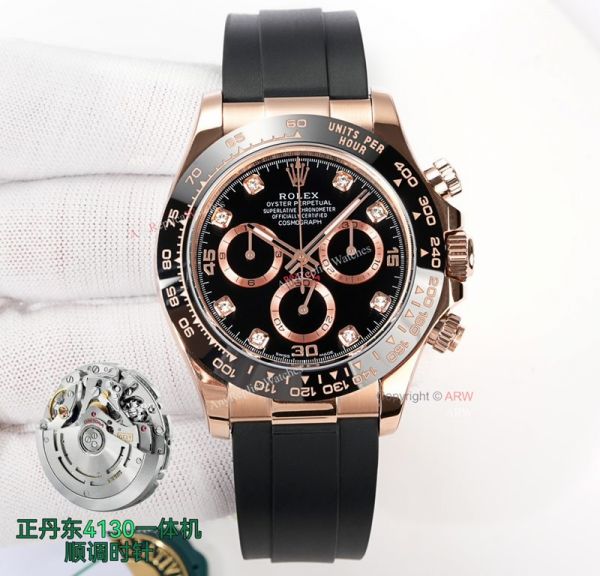 Clean Factory ROLEX Daytona 4130 Movement Black Face Men's Watch