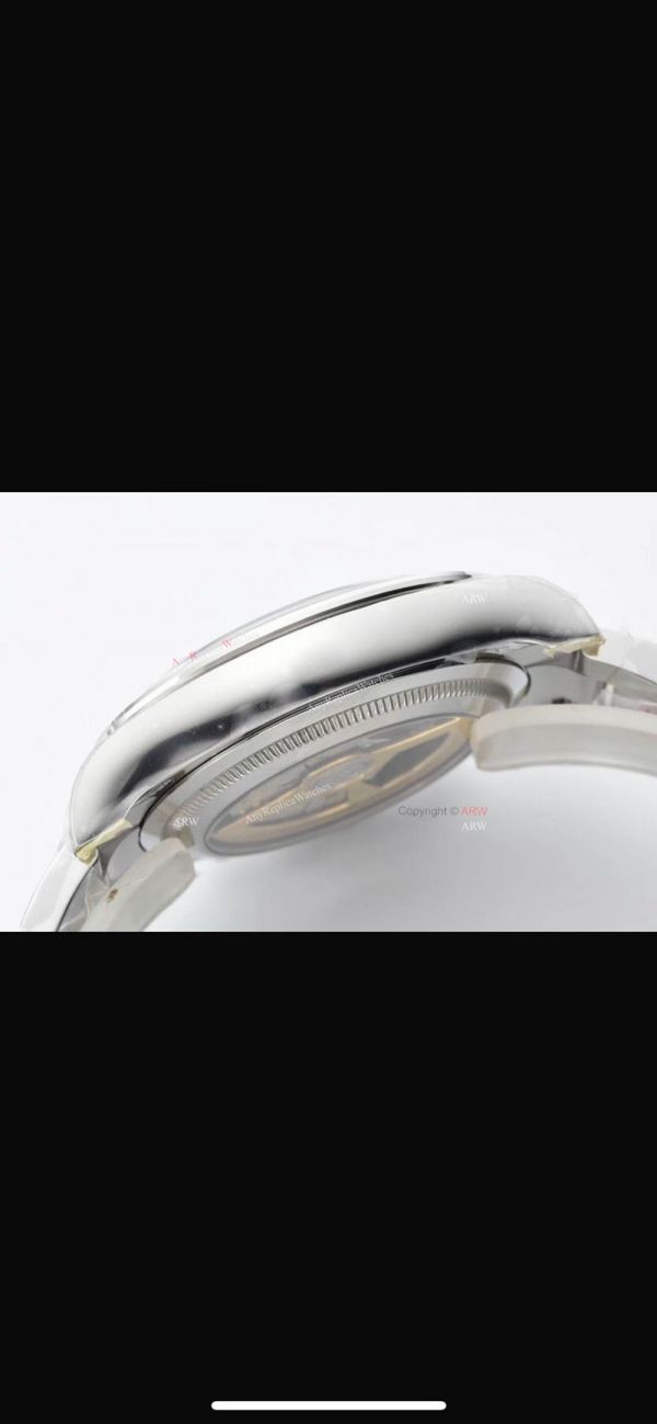 * Rolex crown logo micro etched at 6 oclock on the crystal, screw links, serial number between links. Solid end links