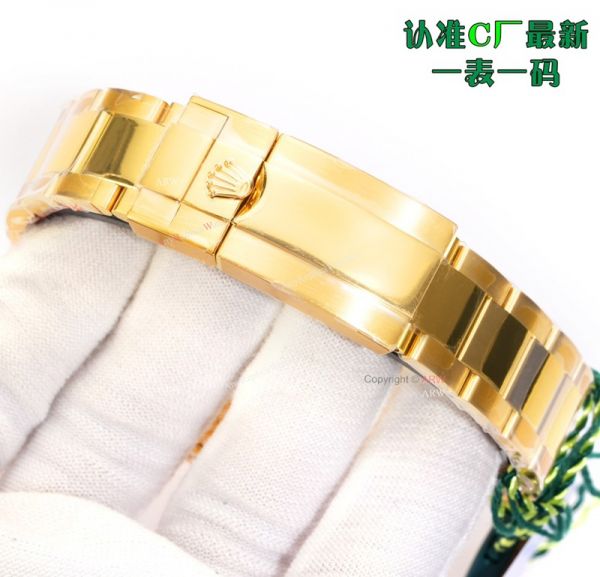 * Rolex crown logo micro etched at 6 oclock on the crystal, screw links, serial number between links. Solid end links