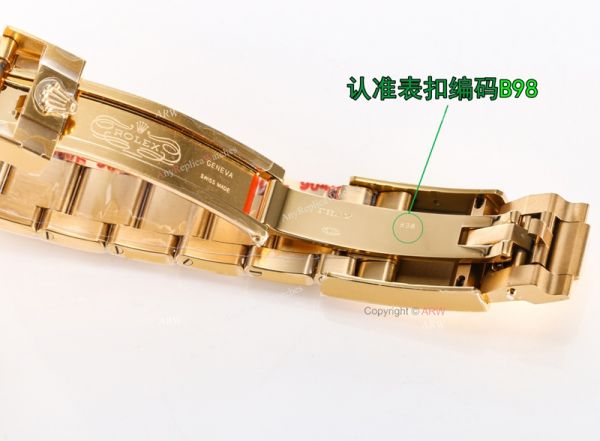 * Rolex crown logo micro etched at 6 oclock on the crystal, screw links, serial number between links. Solid end links