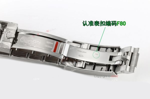 * Rolex crown logo micro etched at 6 oclock on the crystal, screw links, serial number between links. Solid end links