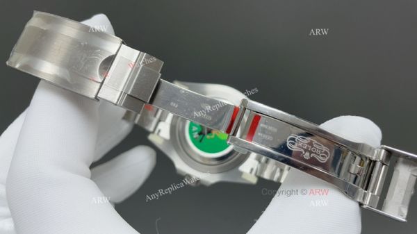 * Rolex crown logo micro etched at 6 oclock on the crystal, screw links, serial number between links. Solid end links