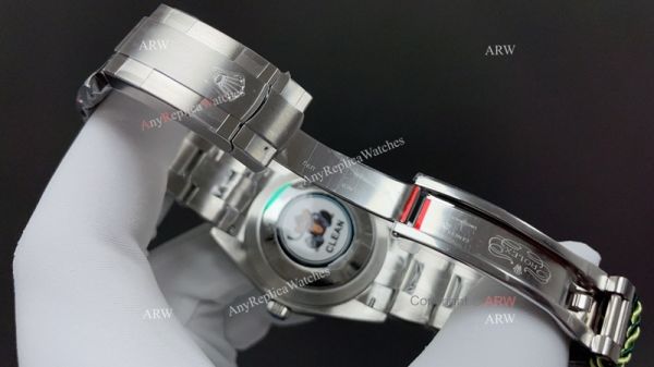 * Rolex crown logo micro etched at 6 oclock on the crystal, screw links, serial number between links. Solid end links