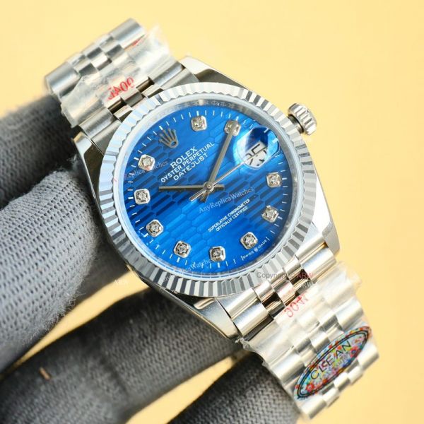 Clean Factory Rolex Datejust 2824 Blue Face Watch 36mm