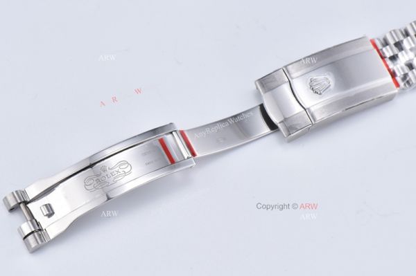 * Rolex crown logo micro etched at 6 oclock on the crystal, screw links, serial number between links. Solid end links