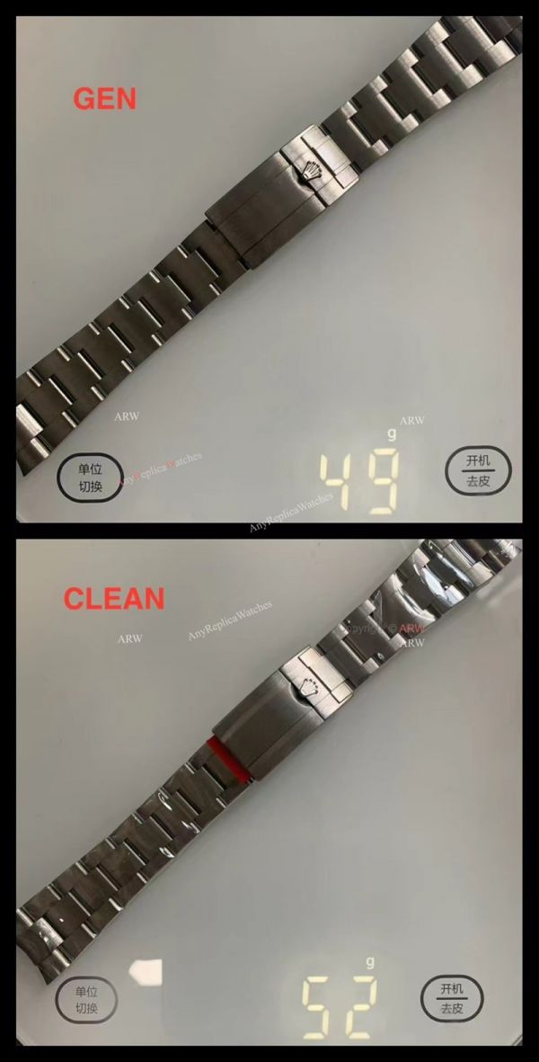 * Rolex crown logo micro etched at 6 oclock on the crystal, screw links, serial number between links. Solid end links