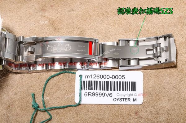 * Rolex crown logo micro etched at 6 oclock on the crystal, screw links, serial number between links. Solid end links