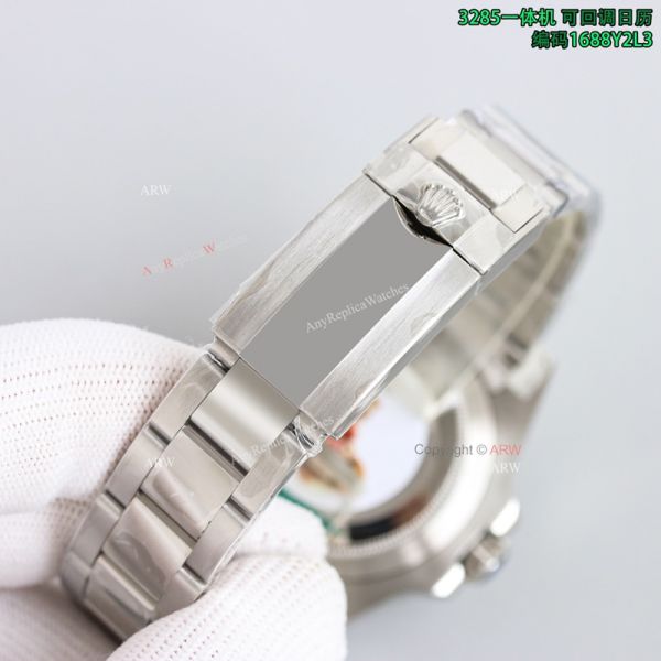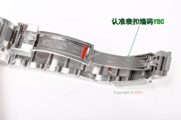 * Rolex crown logo micro etched at 6 oclock on the crystal, screw links, serial number between links. Solid end links