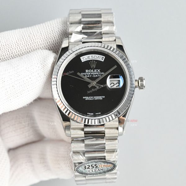 Clean Factory Rolex Datejust 3255 Black Face Watch 36mm