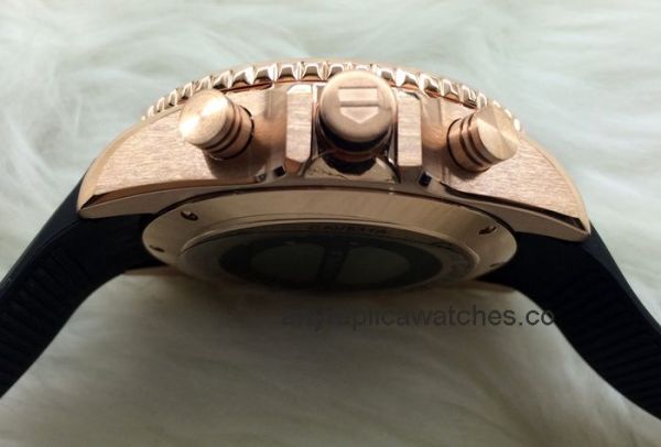 Rose Gold Case Black Rubber Strap Chronograph Men Watch