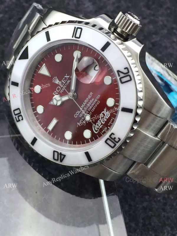 Replica Rolex Coca Cola Submariner watch Red dial white ceramic