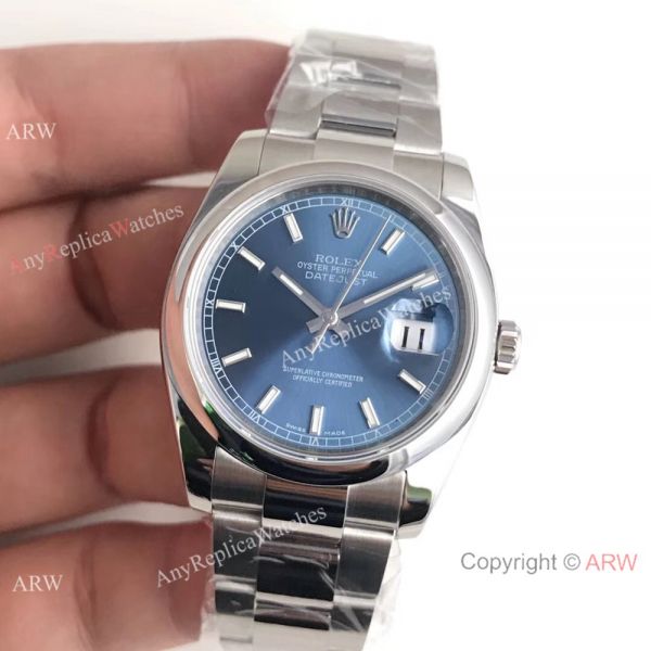 AR Factory Copy Rolex Oyster DateJust SS Blue Face Watch - SWISS 3135