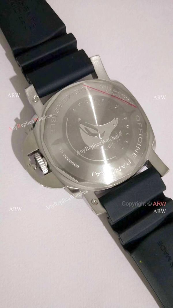 All the appropriate Panerai markings in all the appropriate places, including the clasp, dial, and back.