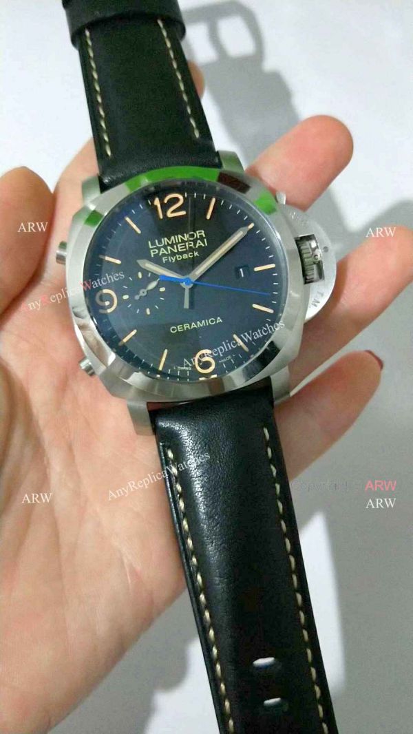 This is a very beautiful panerai luminor flyback mens watch. It has the SUPERIOR QUALITY. Top grade fake watch. No one will know it is replica.