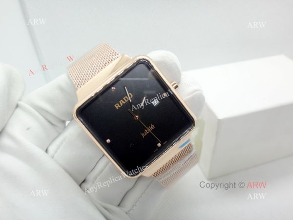 Top Grade Rose Gold Case Black Dial Rado Replica Watches