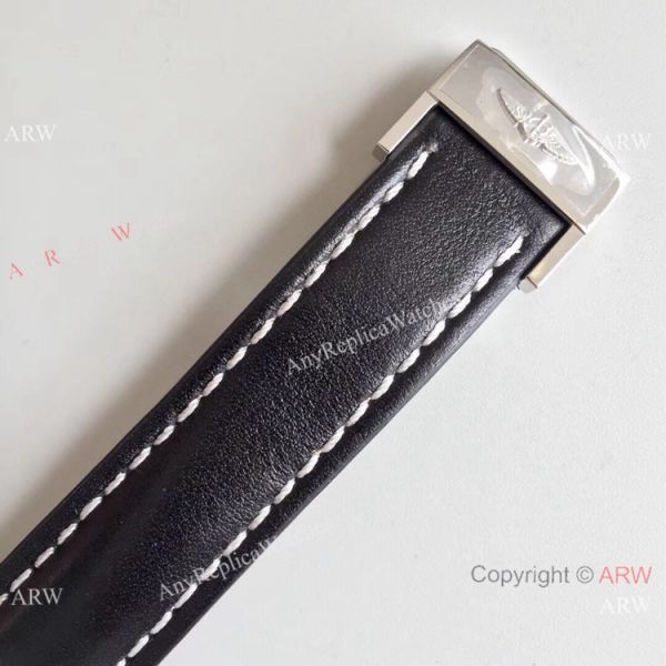 Bracelet Material: Black Leather Bracelet with Breitling Logo on Buckle