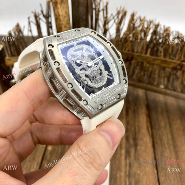 316L Silver Steel Diamond Case Black Rubber Bracelet Diamond Skull Dial Richard Mille Watch