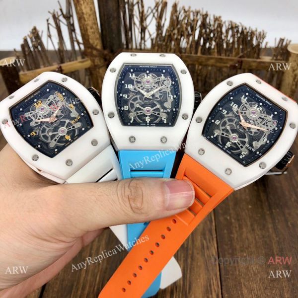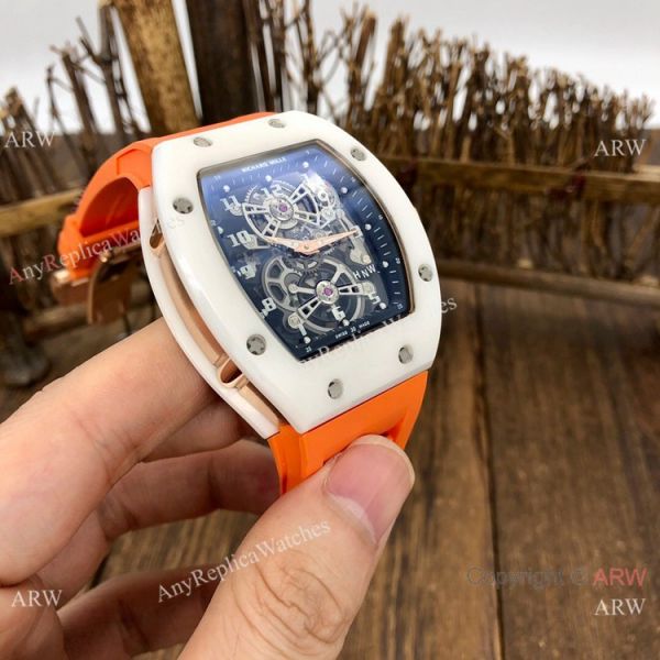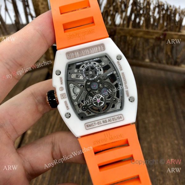 Ceramic Case Orange Rubber Bracelet Skeleton Dial Richard Mille Watch