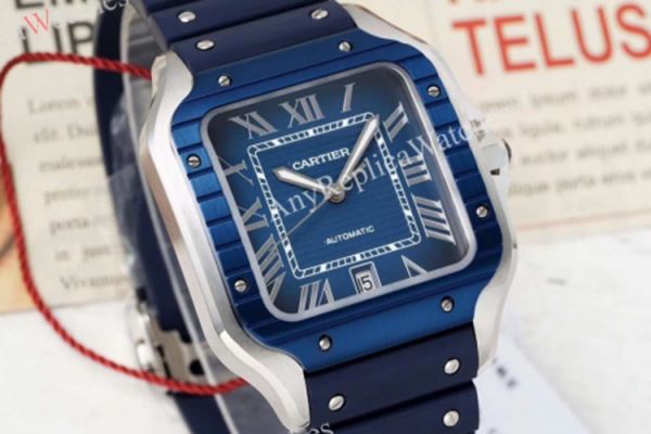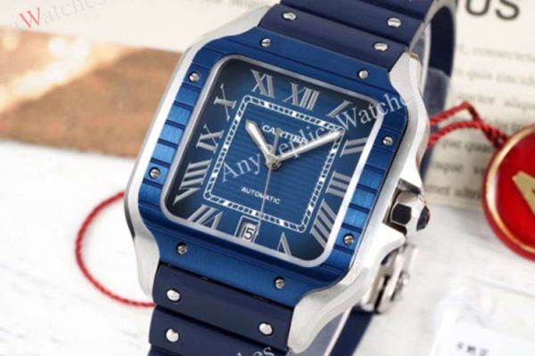 Cartier Santos 9015 Automatic Movement Blue Leather Strap Blue 39.8*47.5mm Watch