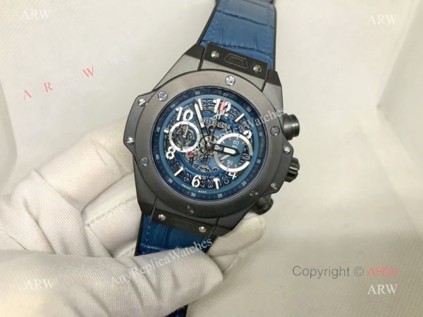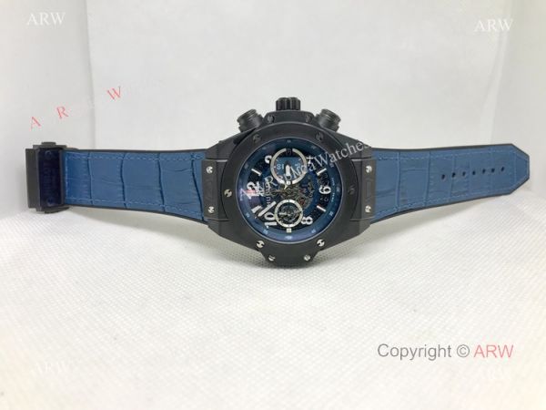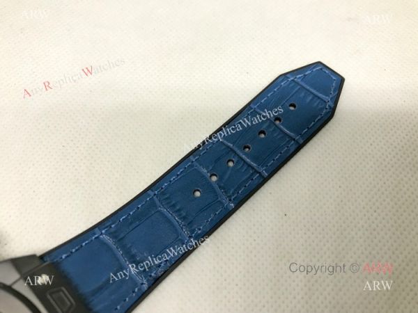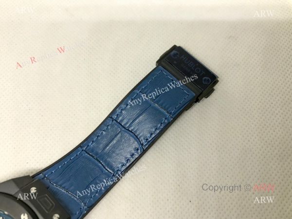 316L Stianless Steel coated Black Case Blue Dial Blue Gummy Strap Hublot Knockoff Watch