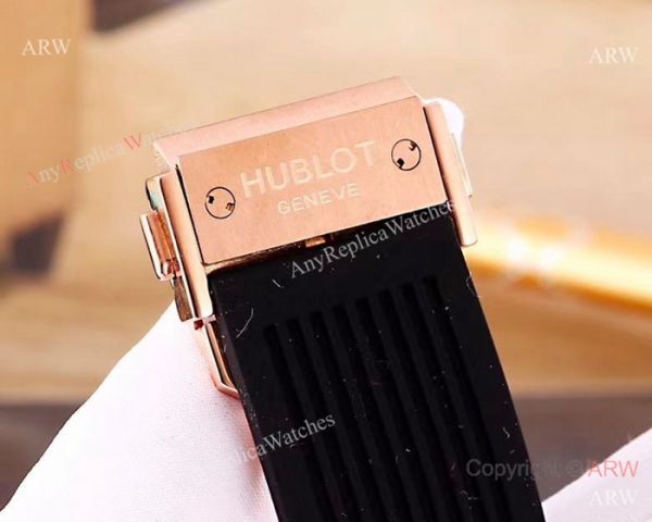 Rose Gold Watch case Black Rubber Band w deployment Buckle