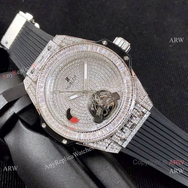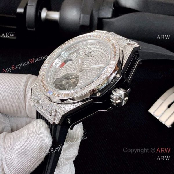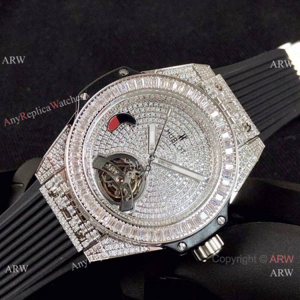 Stainless Steel Diamond Watch Case Diamond Face Black Rubber strap
