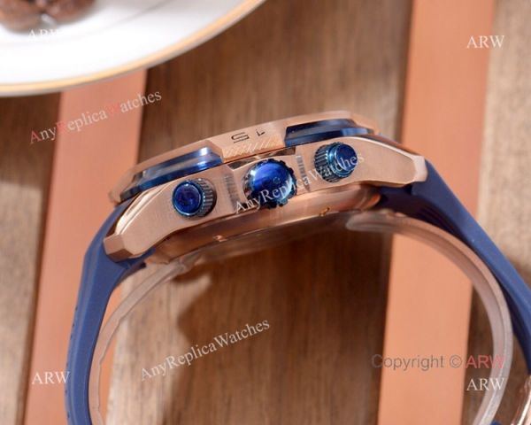 Rose Gold Watch case Blue Perpetual Calendar Blue Rubber Strap