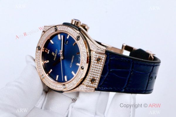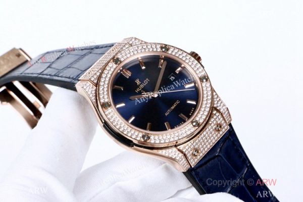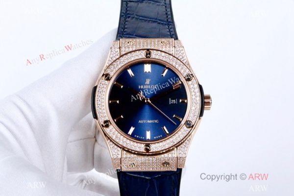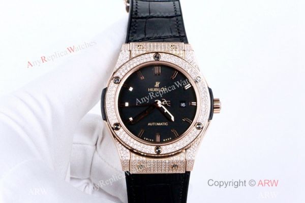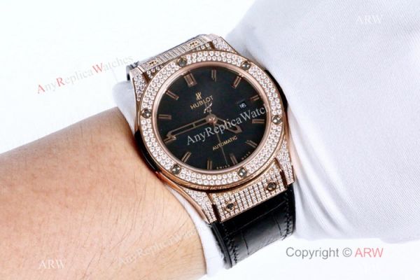 Copy Hublot Classic Fusion Rose Gold Iced Out Watch