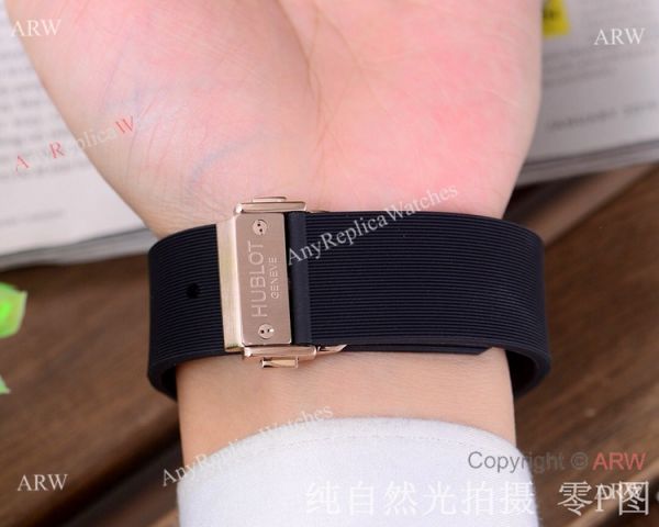Hublot Rose Gold Case - Hublot  Blue Face - Hublot Blue Rubber Strap Hublot Classic Fusion 42mm for men