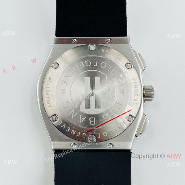 All the appropriate Hublot markings in all the appropriate places, including the clasp, dial, and back.