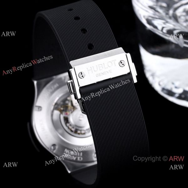 All the appropriate Hublot markings in all the appropriate places, including the clasp, dial, and back.