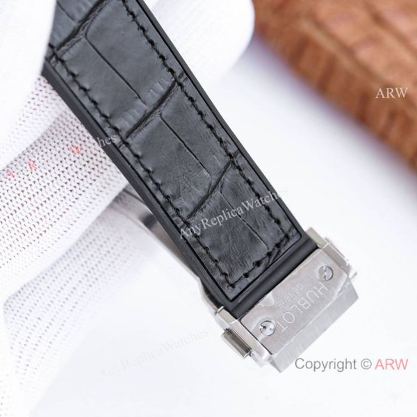 All the appropriate Hublot markings in all the appropriate places, including the clasp, dial, and back.