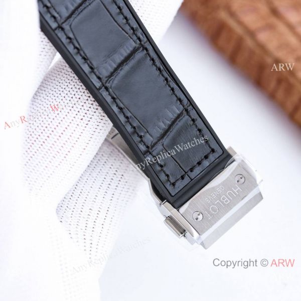 All the appropriate Hublot markings in all the appropriate places, including the clasp, dial, and back.