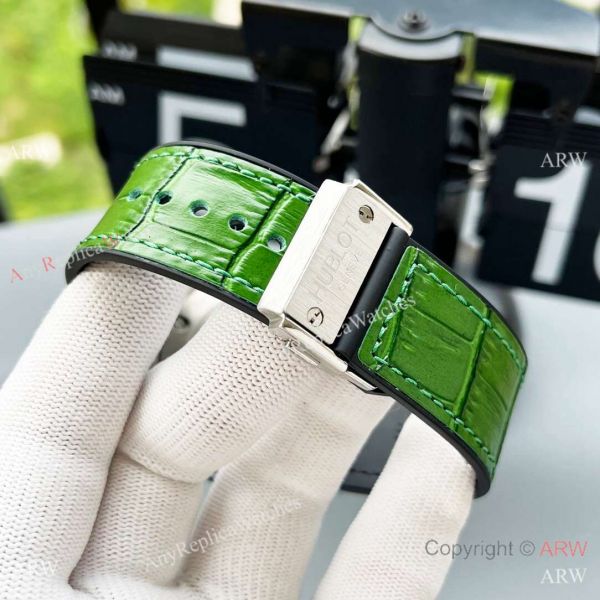 All the appropriate Hublot markings in all the appropriate places, including the clasp, dial, and back.