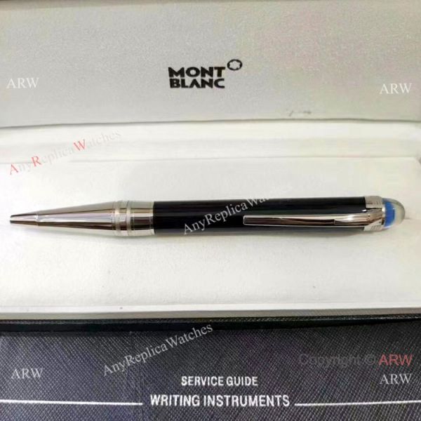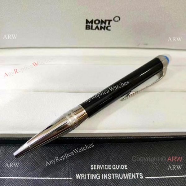 Black Precious Resin Barrel, Silver Clip and Blue Dome Monte Blanc Starwalker Pen
